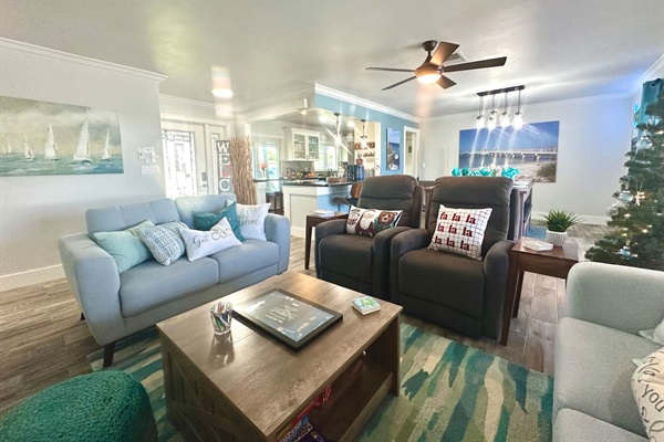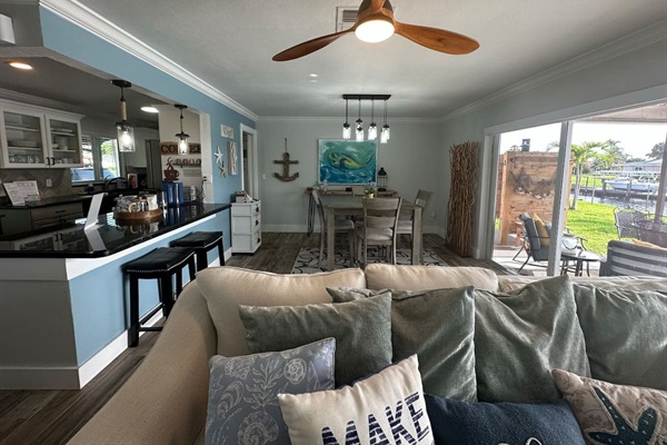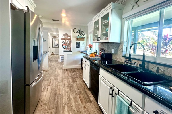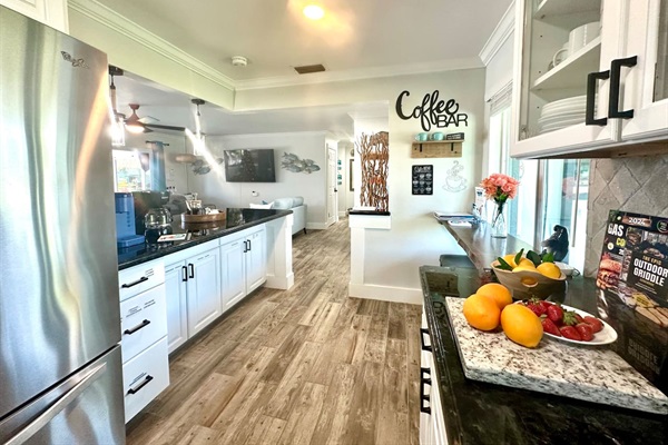 newly remodeled kitchen open to living and dining area