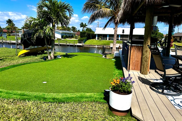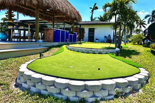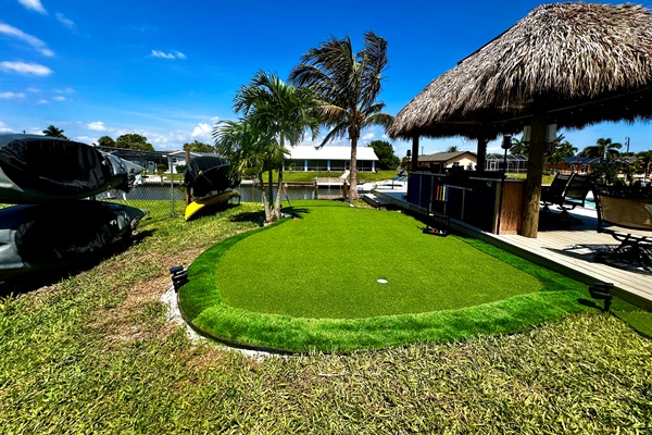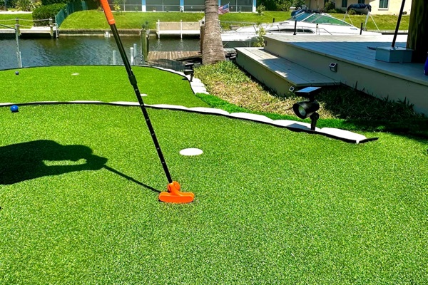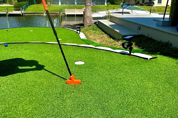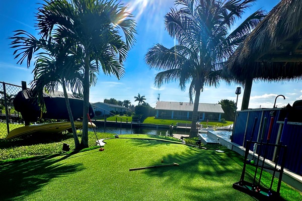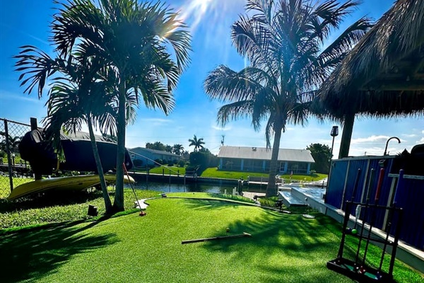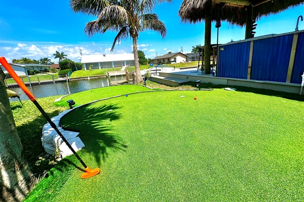 Enjoy traditional putting, or create a croquet game with accessories provided in the game area
