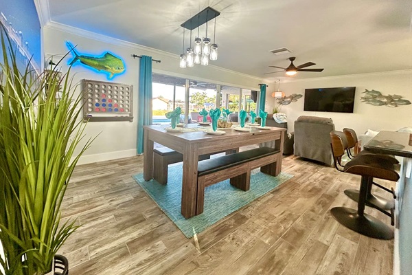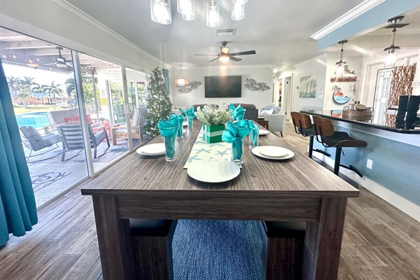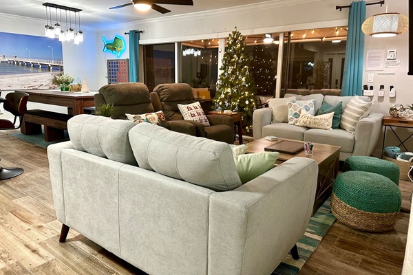 outdoor TV under the lanai with plenty of seating