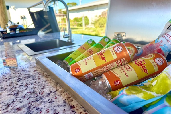 built in ice chest for cold drinks by the grill
